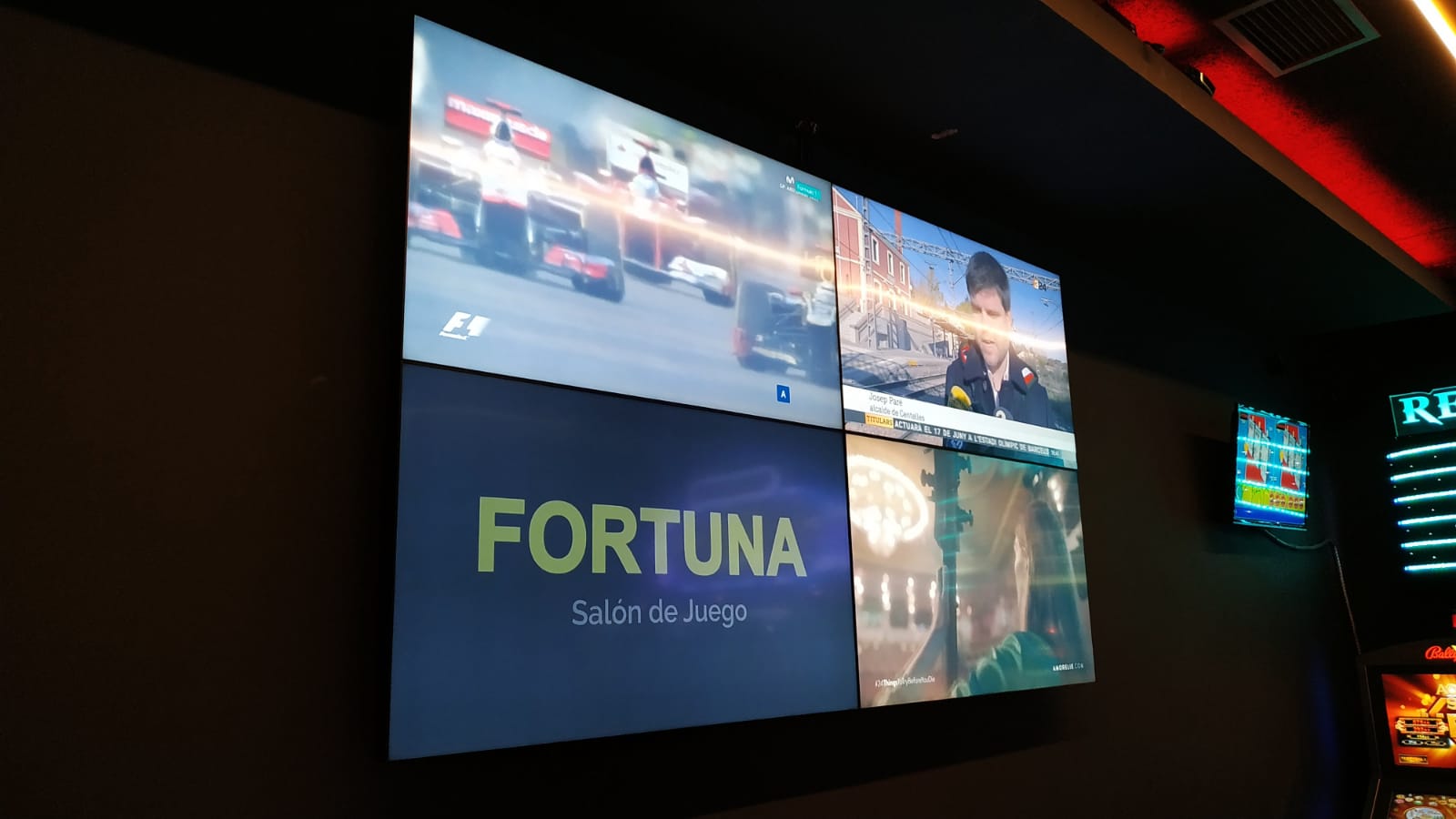 El Salón Fortuna de Barcelona, ha optado por la experiencia VideoWoW para su salón de juegos de Barcelona, en donde ha instalado de la mano de nuestros especialistas IT este videowall 2×2. El salón de juegos, es uno de los entornos de retail en el que se reciben más impactos audiovisuales, por la naturaleza del misma del sector del recreativo. Es por ello, que construir impactos publicitarios de alto impacto es de vital importancia.