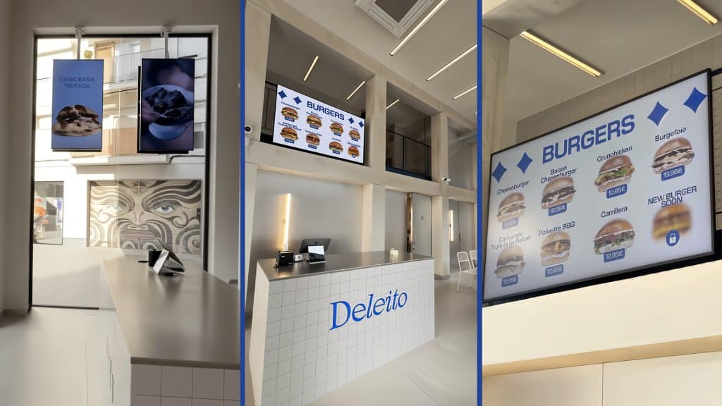 Resultado: Mayor visibilidad en escaparate, reducción de esperas en take away, imagen de marca reforzada y gestión ágil de contenidos.